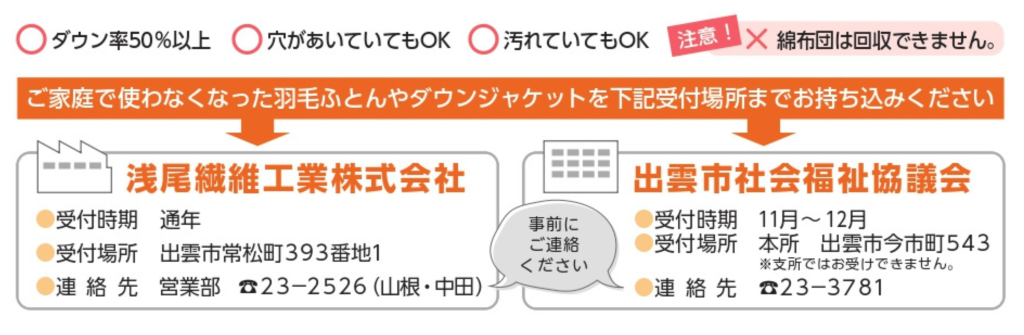 ~使わなくなった羽毛製品が出雲市を良くする募金になります~