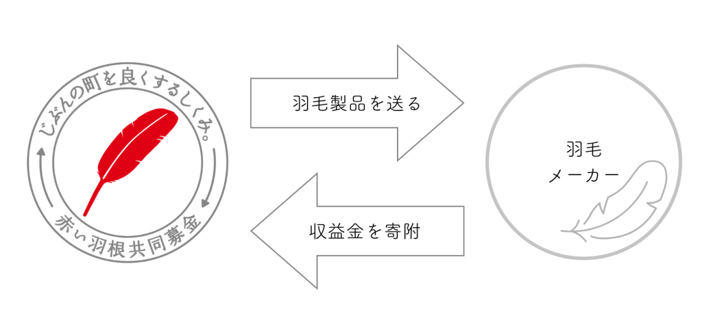 UMOUプロジェクトとは、使わなくなった羽毛製品を回収してその収益金の一部が赤い羽根共同募金を通じて地域福祉活動に活用される取組です。
